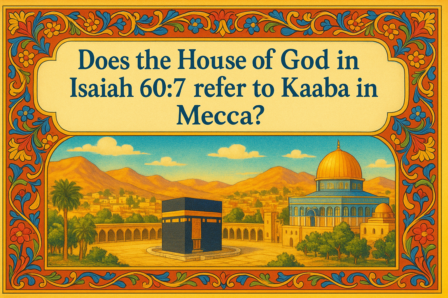 In summary, proponents of this view argue that Isaiah 60, verse 7, refers to the Kaaba and its role in future worship by Ishmael’s descendants. They connect this with Genesis 21, verse 20 (“God was with the lad“) and Surah 14, verse 37 (Abraham settling Ishmael near God’s sacred house), suggesting that these texts collectively point towards Mecca as a divinely favored location for monotheistic worship.