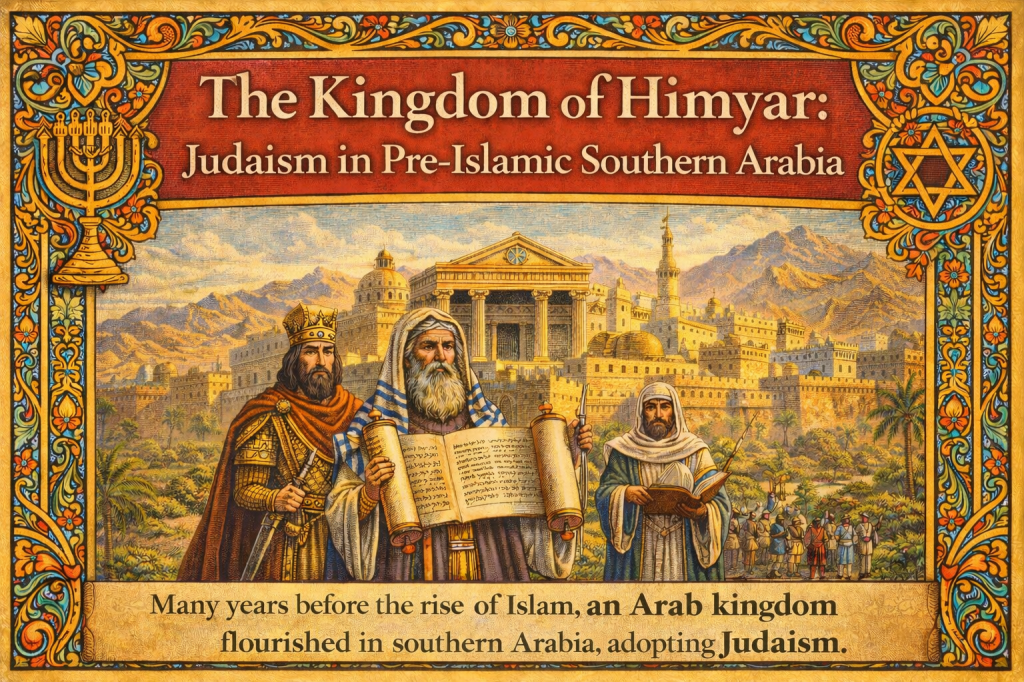 The Kingdom of Himyar stands as one of the most intriguing civilizations of pre-Islamic Arabia. Flourishing in southern Arabia—primarily in what is now 🇾🇪 Yemen—Himyar is historically remarkable for a rare phenomenon in the ancient Near East: the large-scale adoption of Judaism ✡️ by a ruling Arab kingdom centuries before the rise of Islam ☪️.